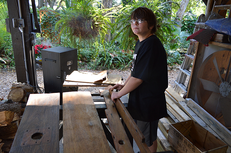 Connor cut the 2x4's for the saw horses and started in with the pressure washer on the barnacles. Neal jumped in with a scraper until one of the neighbors got home to help flip the boat.